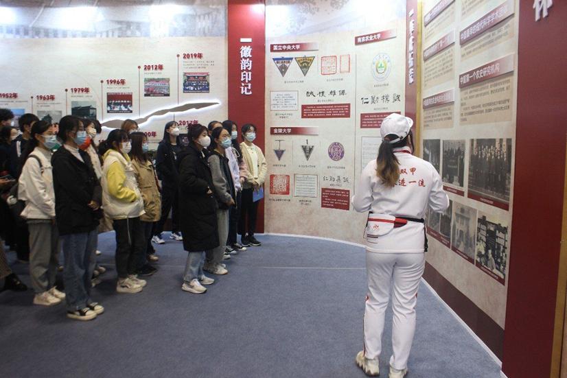 以上两个部分参观结束后,学生们自行游览以实物形式展出的学校农业科技创新的前沿成果、南农特色扶贫产品、大学生科技文化作品、文化创意产品等,并通过展览的第三部分奋进篇章,深入了解学校五大学部、21个学院的办学成就。