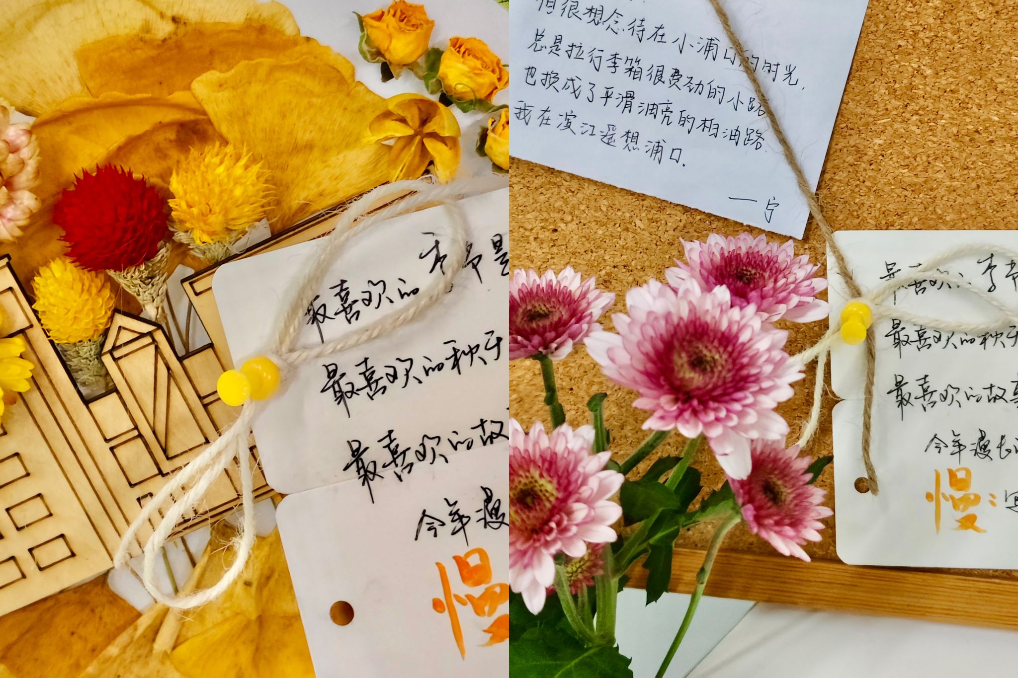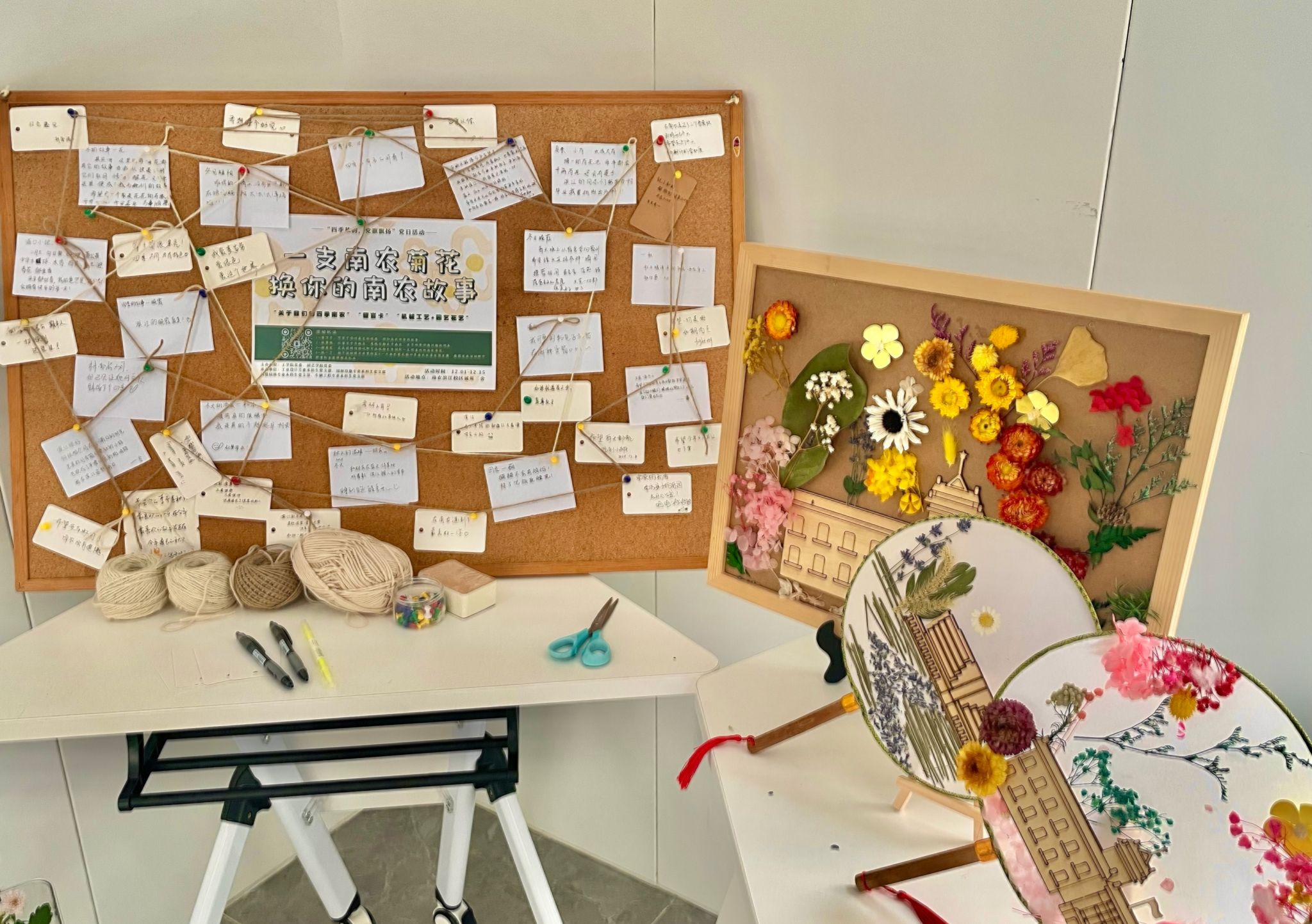 为了让更多的同学感受“四季秾韵”,党员们将创作的立体画作品搬进学生社区进行展览。通过“一支南农菊花换你的南农故事”活动,鼓励同学们将自己的“小趣事”“小成就”“小心愿”以便签纸的方式分享在留言板,通过讲述和分享自己身边的“南农故事”,共同绘制属于南农人的四季画卷!