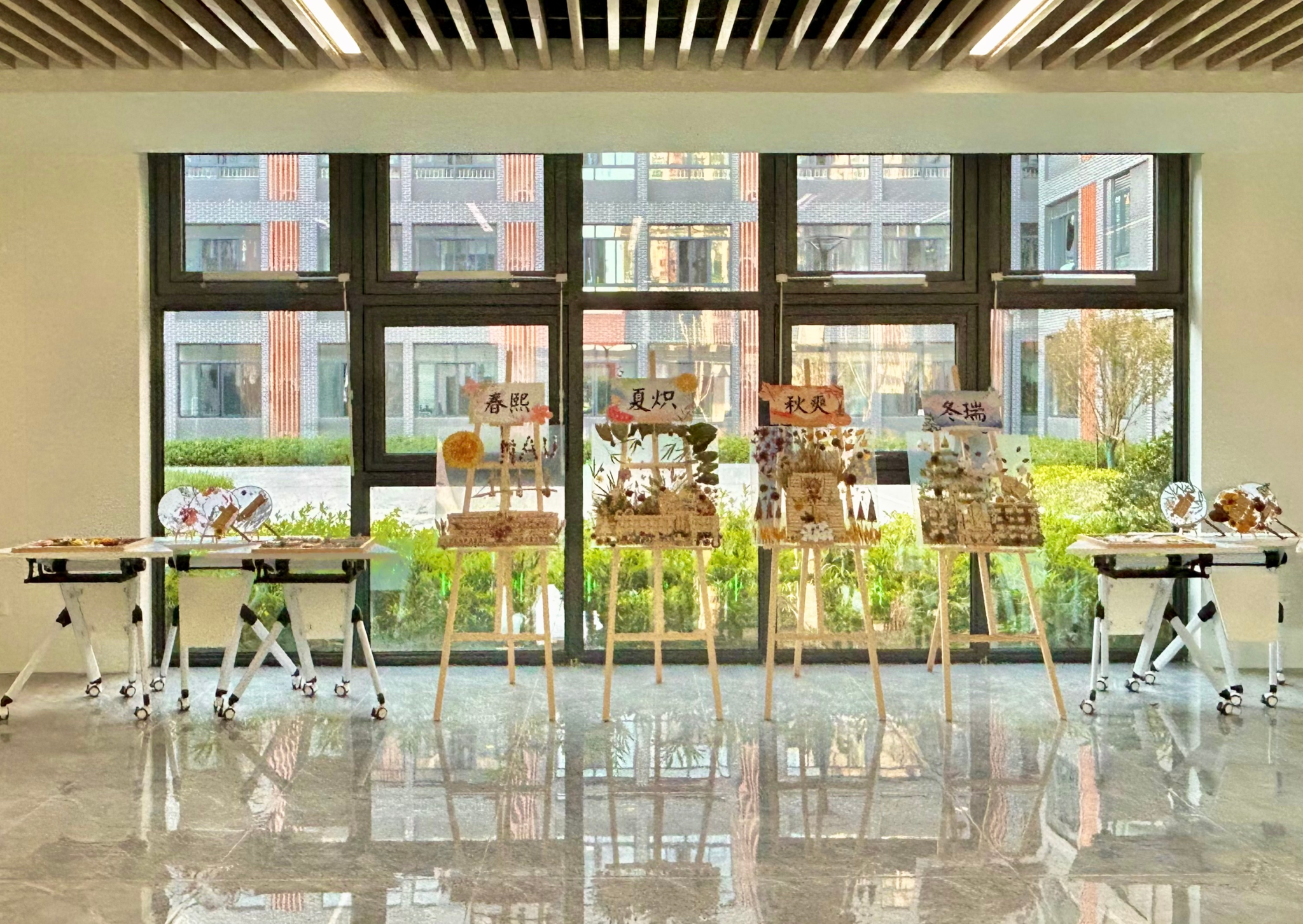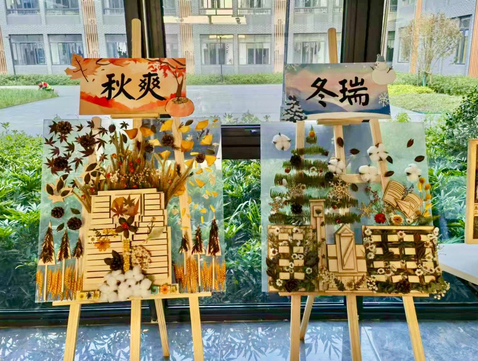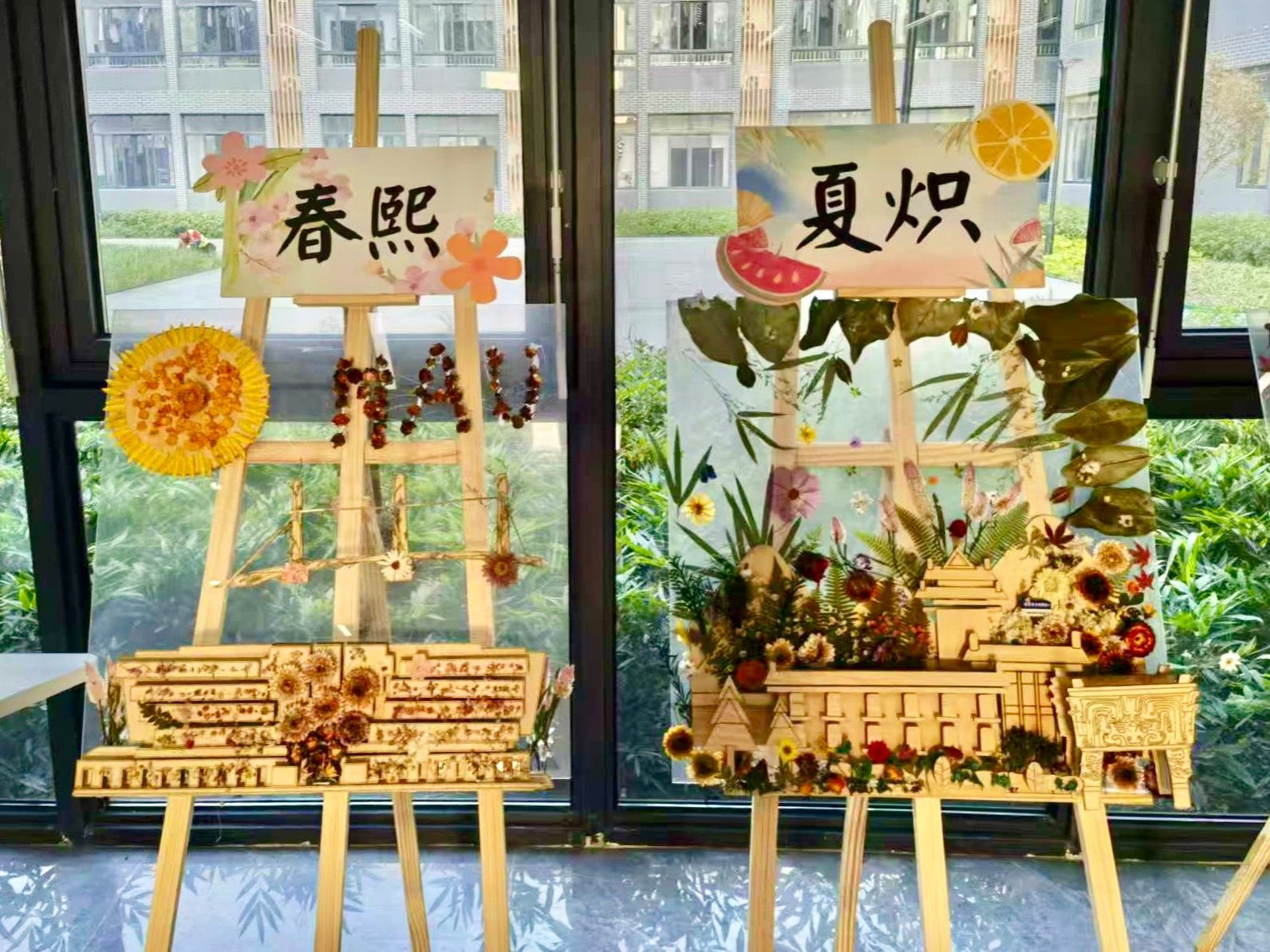 三校区一体发展新格局背景下,支部党员们以三校区校园四季美景为主线,巧妙地将校园建筑与四季元素相融合,自主设计创作“四季秾韵”之“春熙”“夏炽”“秋爽”“冬瑞”等主题的立体画作。