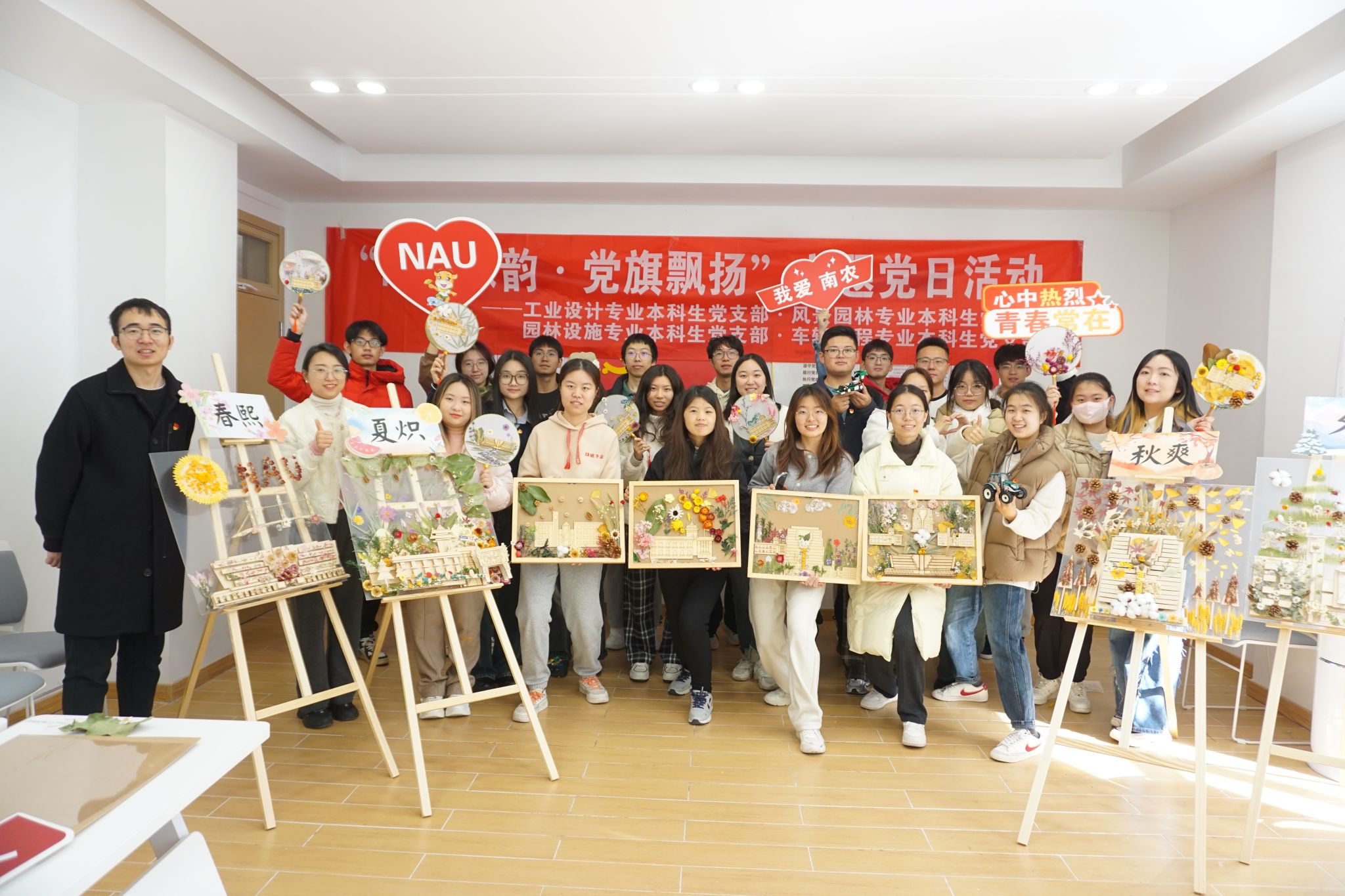 工业设计专业本科生党支部、车辆工程专业本科生党支部、园林设施专业本科生党支部、风景园林专业本科生党支部联合策划组织“四季秾韵·党旗飘扬”主题系列党日活动。党员们走进学生社区,用“创新”和“创意”带来了一场机械“工艺”与园艺“花艺”融合碰撞的美学“盛宴”。