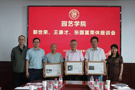 在“厚德厅”召开了郭世荣、王康才、张国富三位老师荣休座谈会。学院党委书记韩健、院长陈素梅、副院长陶书田、三位退休教师及部分老师参加了座谈会。会议由韩健主持。