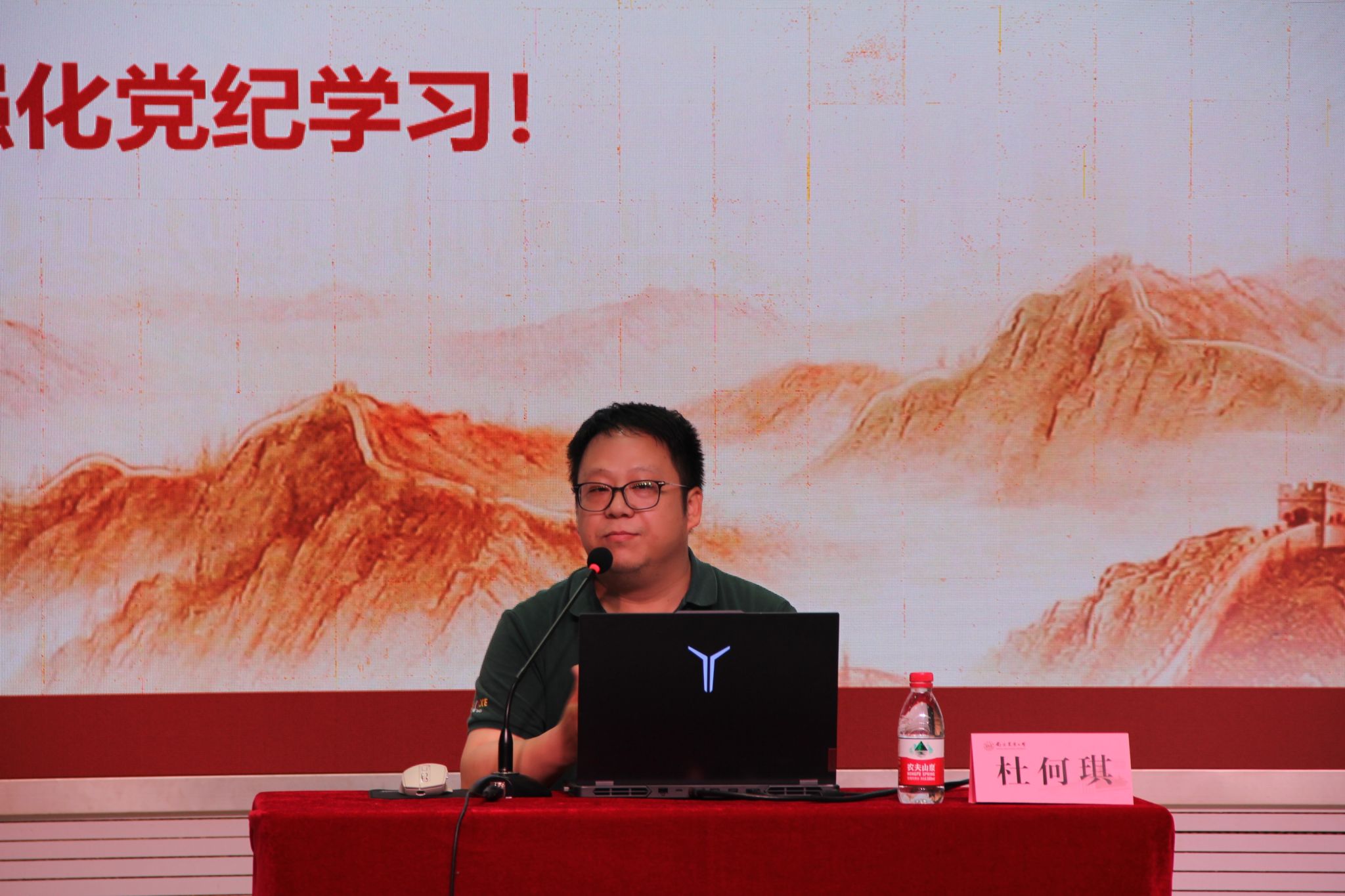 本次党课,杜老师“这个世界上有多少个政党?”“这个世界上超过一百年的政党的有几个?”“这个世界上超过一百年的、依然(有机会)执政的有几个?”“这个世界上超过百年的、一直执政、永葆活力的政党有几个?”这四个问题引入,带领大家探讨党纪党规对于一个政党的意义。他详细地讲述《中国共产党纪律处分条例》修订背景及意义、修订的主要条款修订精神的贯彻落实三个方面内容。他表示,中国共产党从第一次全国代表大会的57名党员,历经风雨,在28年成为了执政党,带领中华民族走向独立与富强,作为一个“百年大党”将继续坚持自我革命精神,永葆青春活力。同时,他希望同学积极做好党纪学习,对自高标准、严要求为全面推进强国建设、民族复兴伟业贡献自己的力量