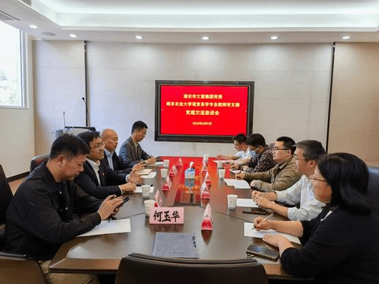 与观赏茶学专业教师党支部座谈交流。淮安市文旅集团党群工作部部长周礼其、淮安市文旅集团工会副主席刘凯军、淮安白马湖文化旅游发展有限公司副总经理季晓旭等陪同来访。观赏茶学专业教师党支部书记王振兴及相关同志出席座谈会。