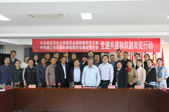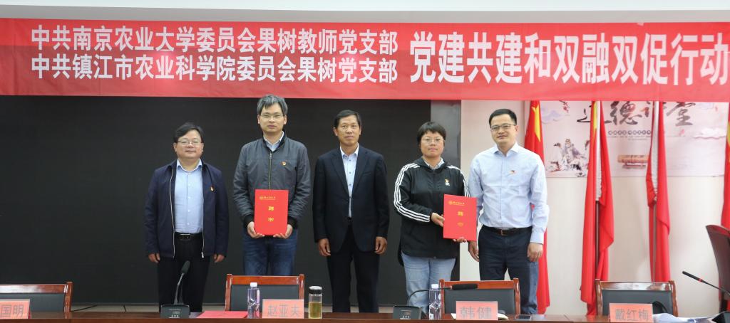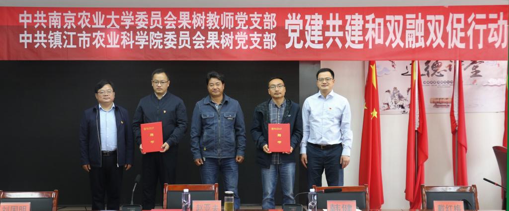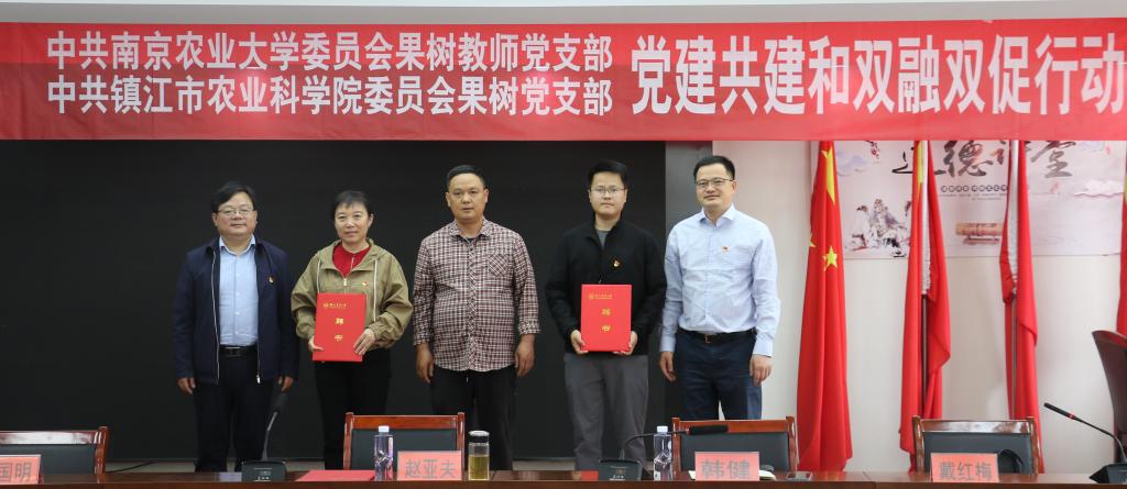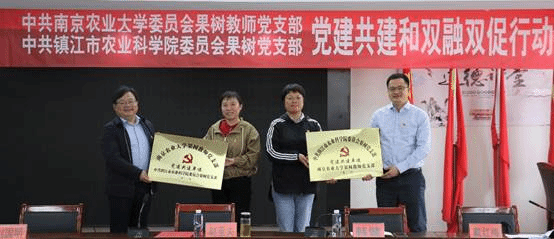 为深入学习贯彻党的二十大精神,全面落实习近平总书记关于全面推进乡村振兴的重要论述,4月21日上午,麻豆在线 果树教师党支部和镇江农科院果树室党支部党建共建揭牌仪式暨“党建引领楷模示范科技赋能乡村振兴”主题党日活动在镇江市戴庄党群活动中心举行。全国时代楷模、镇江农科院赵亚夫研究员,麻豆在线 党委书记韩健,镇江农科院党委书记刘国明,镇江农科院纪委书记戴红梅,麻豆在线 果树教师党支部书记高志红,镇江农科院果树室党支部书记万春雁以及双方教师党支部全体党员参加了活动。