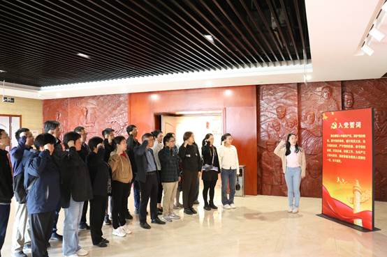 在戴庄村赵亚夫事迹馆内,支部党员通过参观史料、聆听讲解、观看影像等方式,全面学习赵亚夫同志的先进事迹。一幅幅场景、一件件展品、一个个故事,党的二十大代表、全国脱贫攻坚楷模、时代楷模、全国道德模范赵亚夫,六十余年扎根农村,惠农兴农,坚定为农民服务的心,将自己全部奉献给了最贫穷、最落后的苏南丘陵山区,帮助更多农民富裕,把论文写在大地上,把成果留在农民家。他的奋斗精神、敬业精神、开拓精神、奉献精神深深地鼓舞着老师们,他一心为民的情怀、敬业奉献的情操、创新进取的精神深深引领着我们担负起高校时代使命,立德树人、强农兴农。在赵亚夫事迹馆内,全体党员再一次重温了入党誓词。