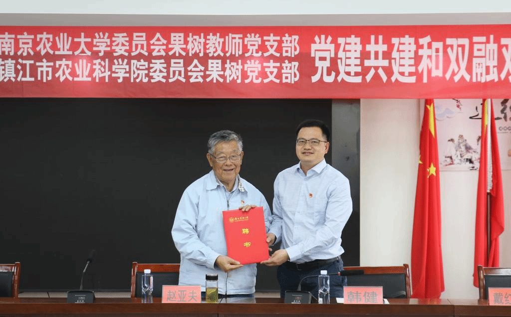 多年来,麻豆在线 果树教师党支部和镇江农科院果树研究室一直保持着良好的科研互助和资源交流。此次双方依托双方党支部梨、桃、葡萄等产业体系岗位科学家、教授党员专业技术优势,开展党建共建,致力推动解决果树产业发展卡脖子技术,结对帮扶果树种植大户解决产业难题。共建授牌仪式上,麻豆在线 党委书记韩健为时代楷模赵亚夫颁发麻豆在线 乡村振兴“产教融合”发展顾问聘书。赵亚夫表示,此次共建活动非常有意义,是贯彻党的二十大精神的很好举措,是一次很好的农科教相结合,科技人员深入到农业生产一线,与农民相结合,打通农业科技推广的“最后一公里”,真正做到推动“三产”融合发展。