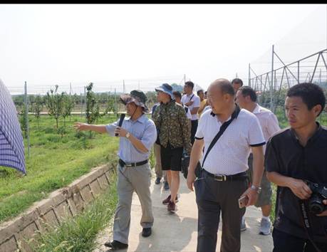 湖熟梨标准化栽培示范园和句容市梨园种植基地,考察了平棚架、Y字形、倒“个”形等不同栽培模式,并品鉴了“翠冠”、“丰水”、“翠玉”、“玉露香”等梨优质品种。