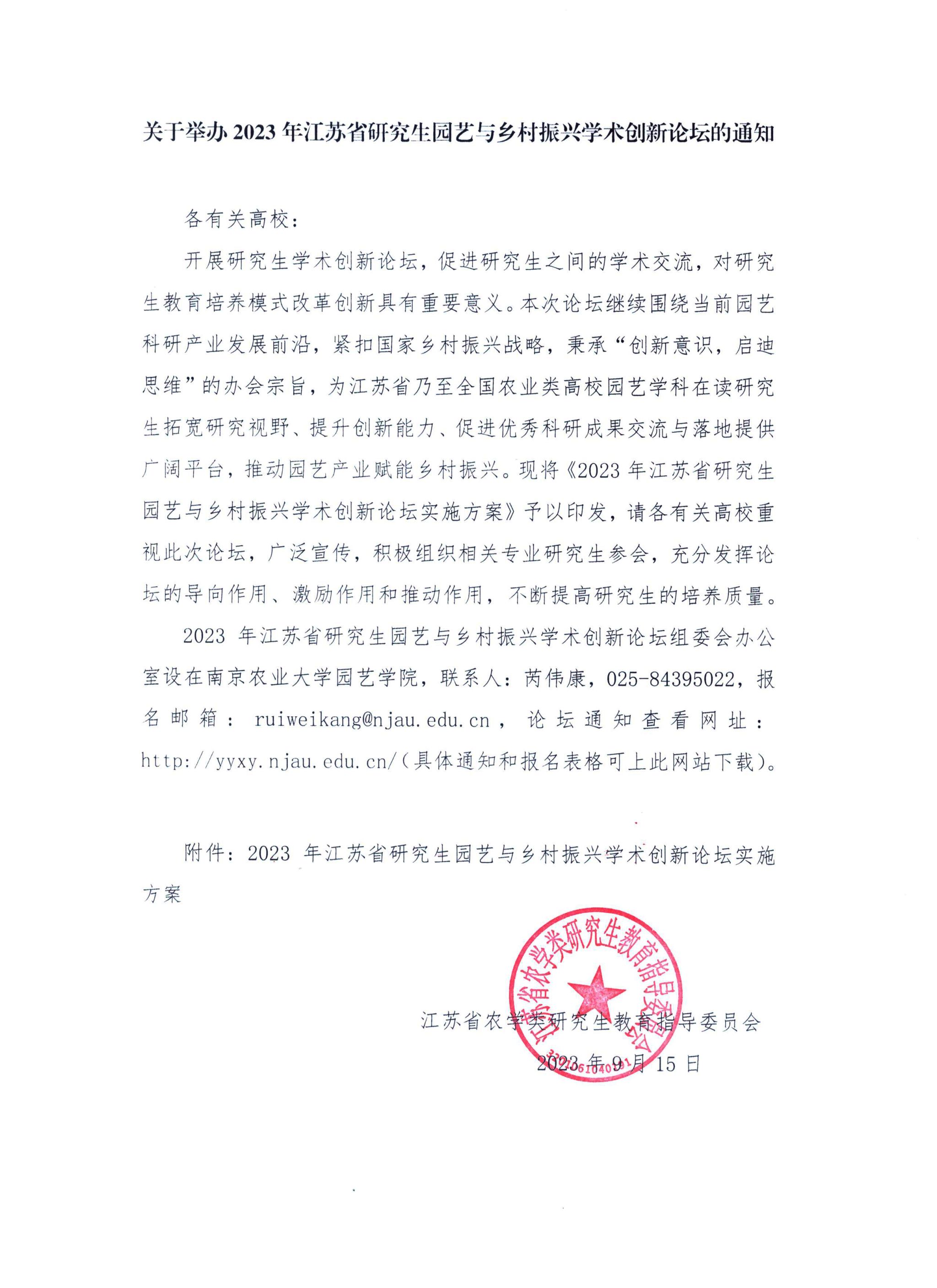 2023年江苏省研究生园艺与乡村振兴学术创新论坛由江苏省农学类研究生教育指导委员会主办,麻豆在线