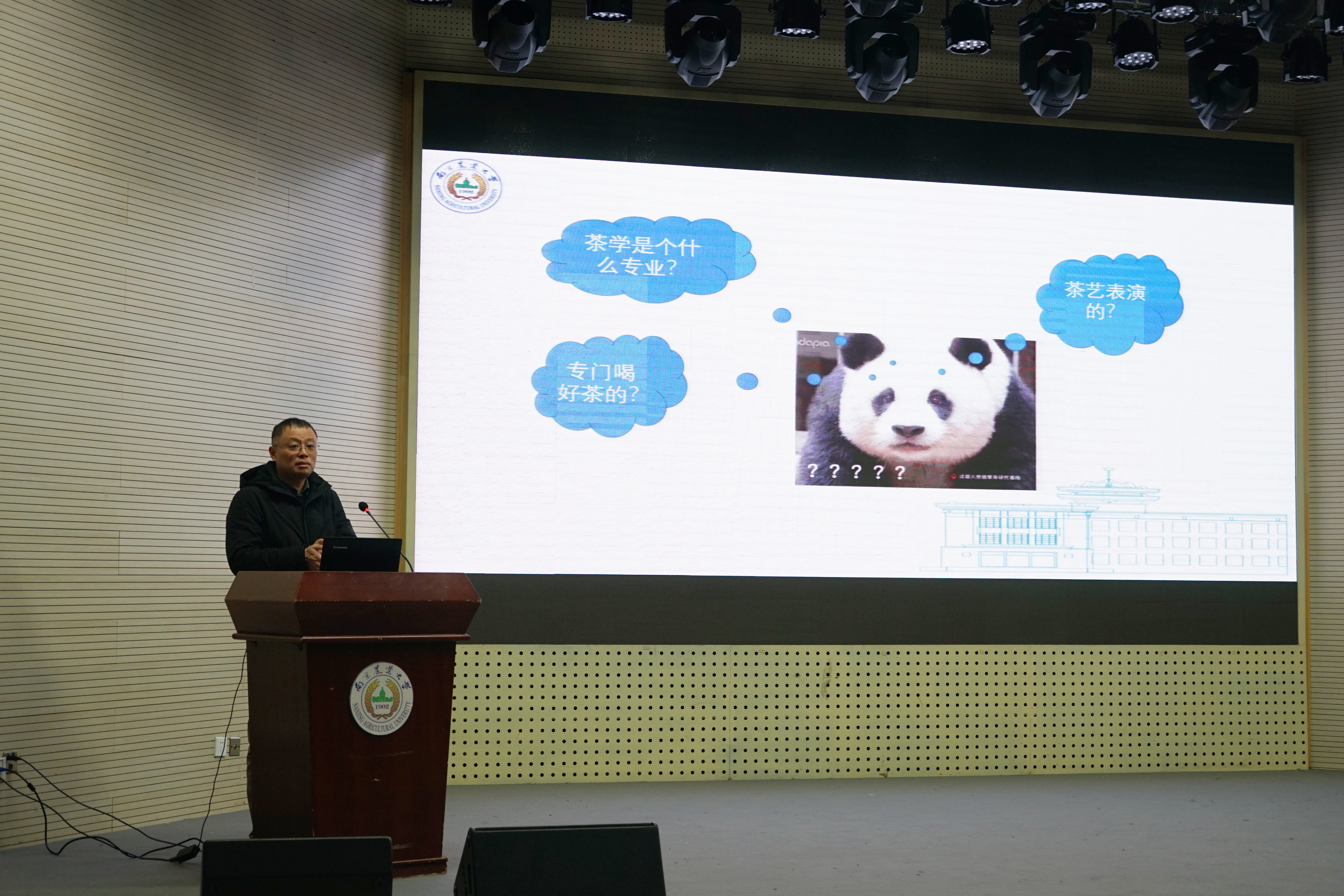 接下来陈暄以幽默风趣的语言更正了大家之前对茶学专业的误解,介绍到茶学是以园艺学、食品科学等学科为主干的特色学科,而我国是唯一开设此专业的国家。他在讲解中穿插了许多学生们外出实习,进行实践操作的照片,吸引了同学们的目光。最后表示茶学让生活更美好,欢迎大家报考。