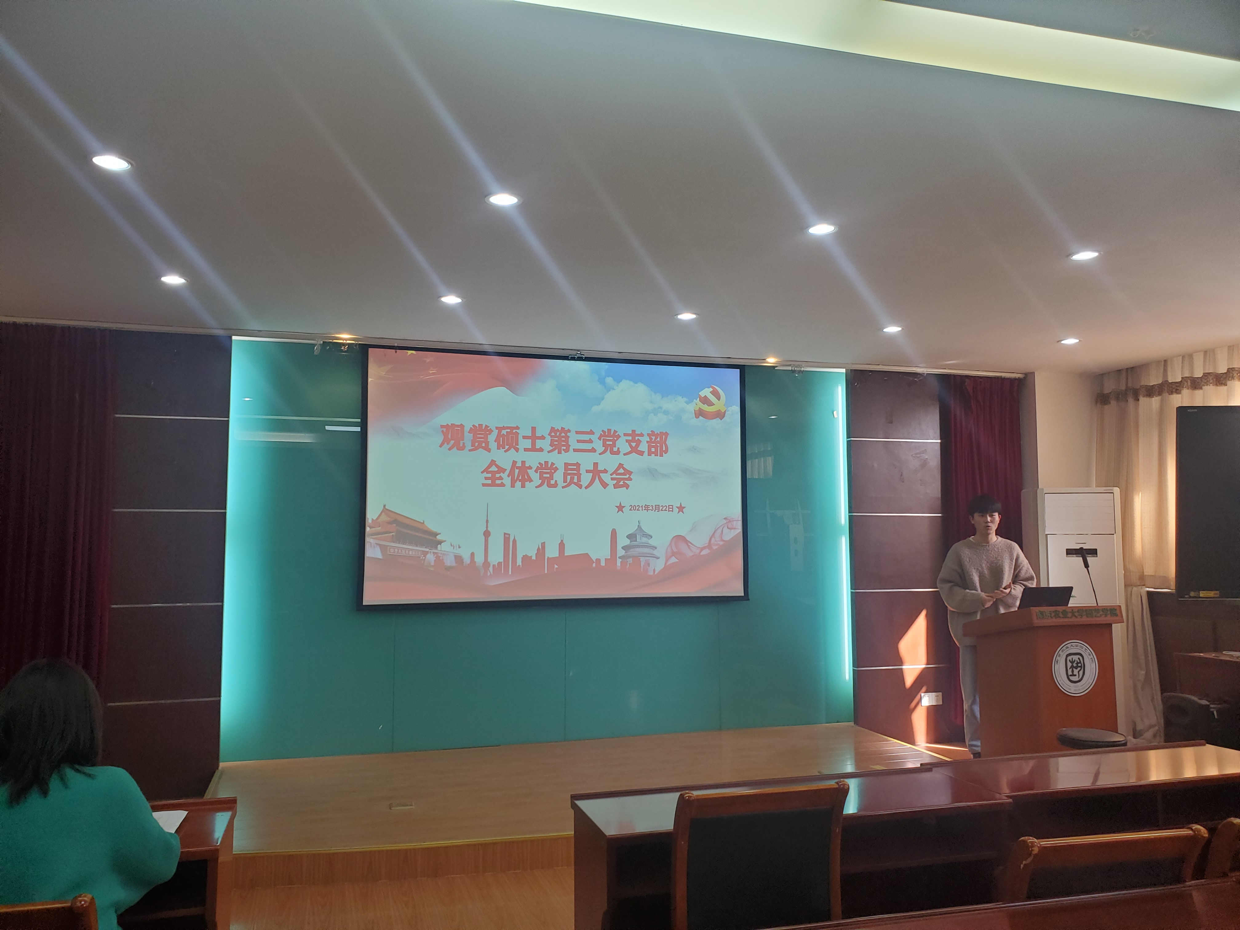 2021年3月22日下午,观赏硕士第三党支部于生科楼B4011顺利召开2020年度民主评议组织生活会。11名支部党员参加会议,会议由支部书记窦靓主持。