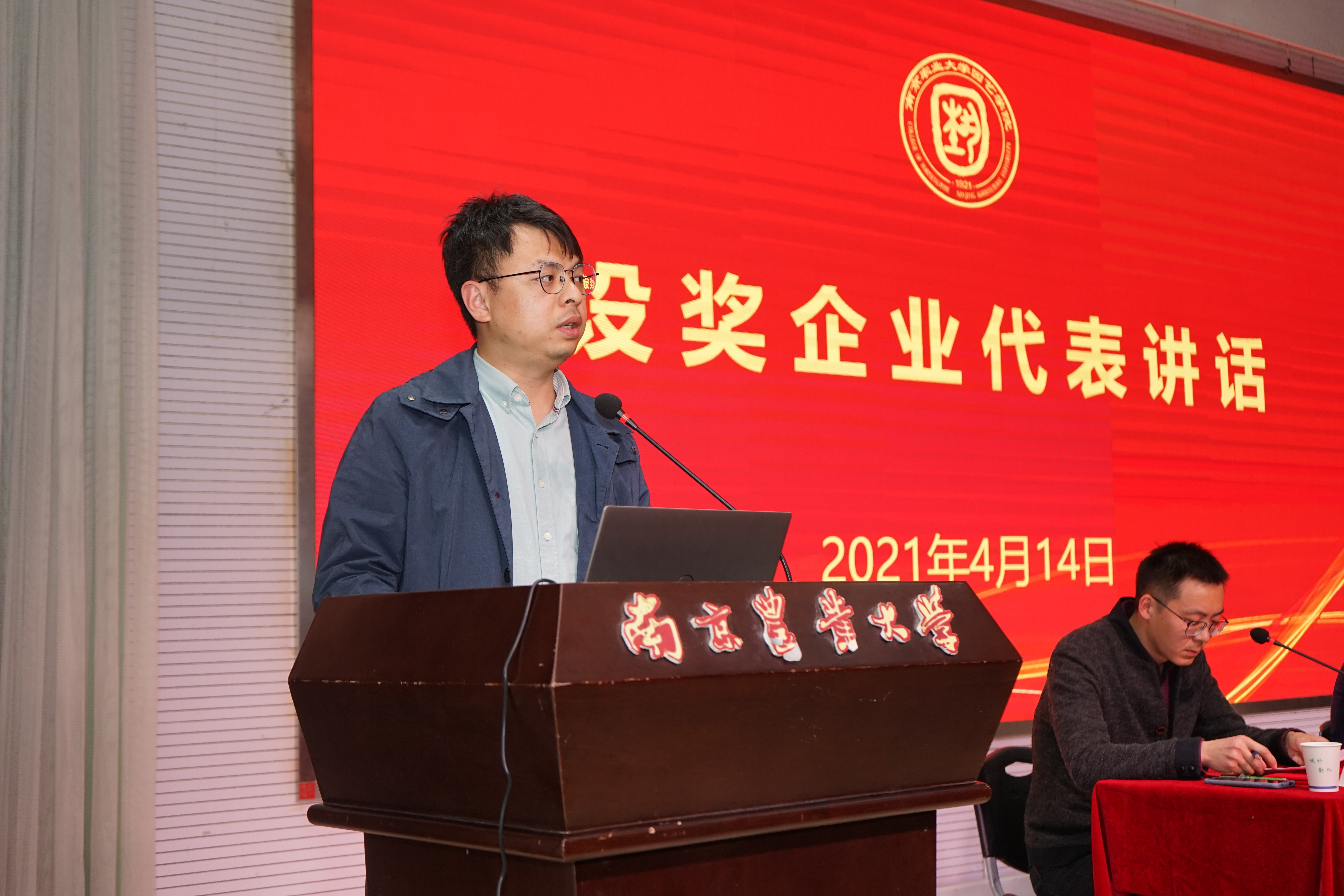 张永辉、黄晨作为设奖企业代表讲话,张永辉首先介绍了金埔园林股份有限公司基本情况,并指出企业的竞争优势,即人才优势、运营模式和技术优势;黄晨介绍了棕榈生态城镇发展股份有限公司的基本情况,并就麻豆在线进行了详细介绍。张永辉、黄晨还就个人在南农学习、生活向与会同学进行了分享。