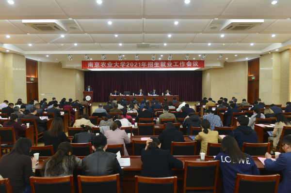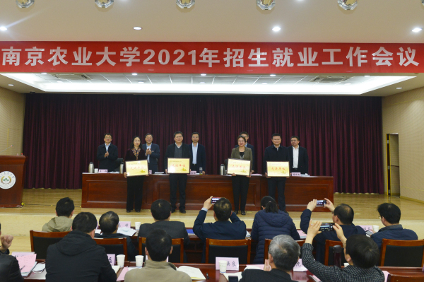 2021年招生就业工作会议举行。校长陈发棣、校党委副书记王春春、刘营军、副校长董维春、校党委常委吴群,各学院、各单位负责人以及学工系统全体人员、招生宣传联络专员等出席会议。会议由王春春主持。