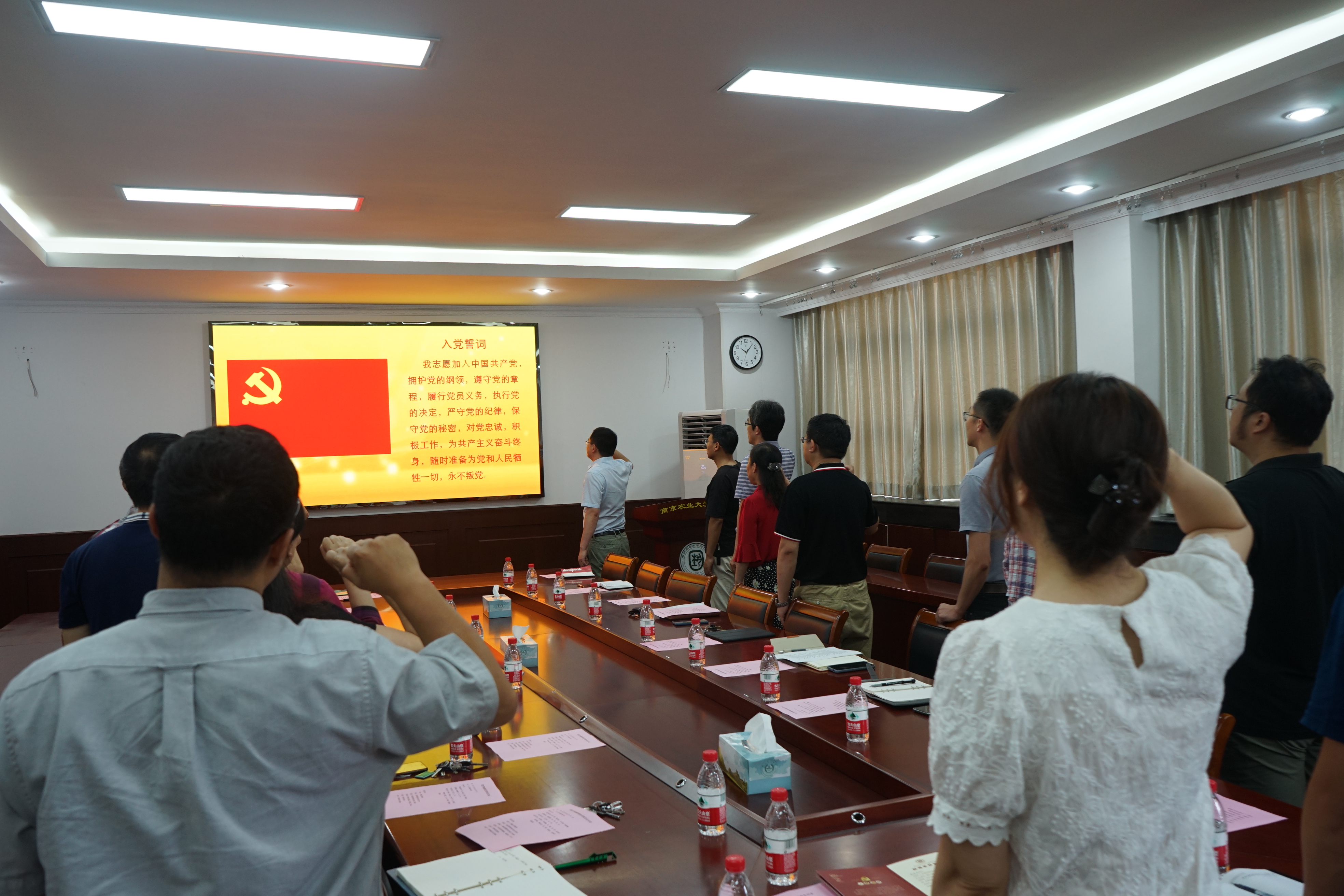 全体党员面向鲜红的党旗,郑重宣誓“我志愿加入中国共产党,拥护党的纲领,遵守党的章程,履行党员义务…”。韩键和吴巨友为党员赠送政治生日贺卡,这种强烈的仪式感,让每位党员牢记入党誓词,强化党性意识,更好发挥共产党员的先锋模范作用。