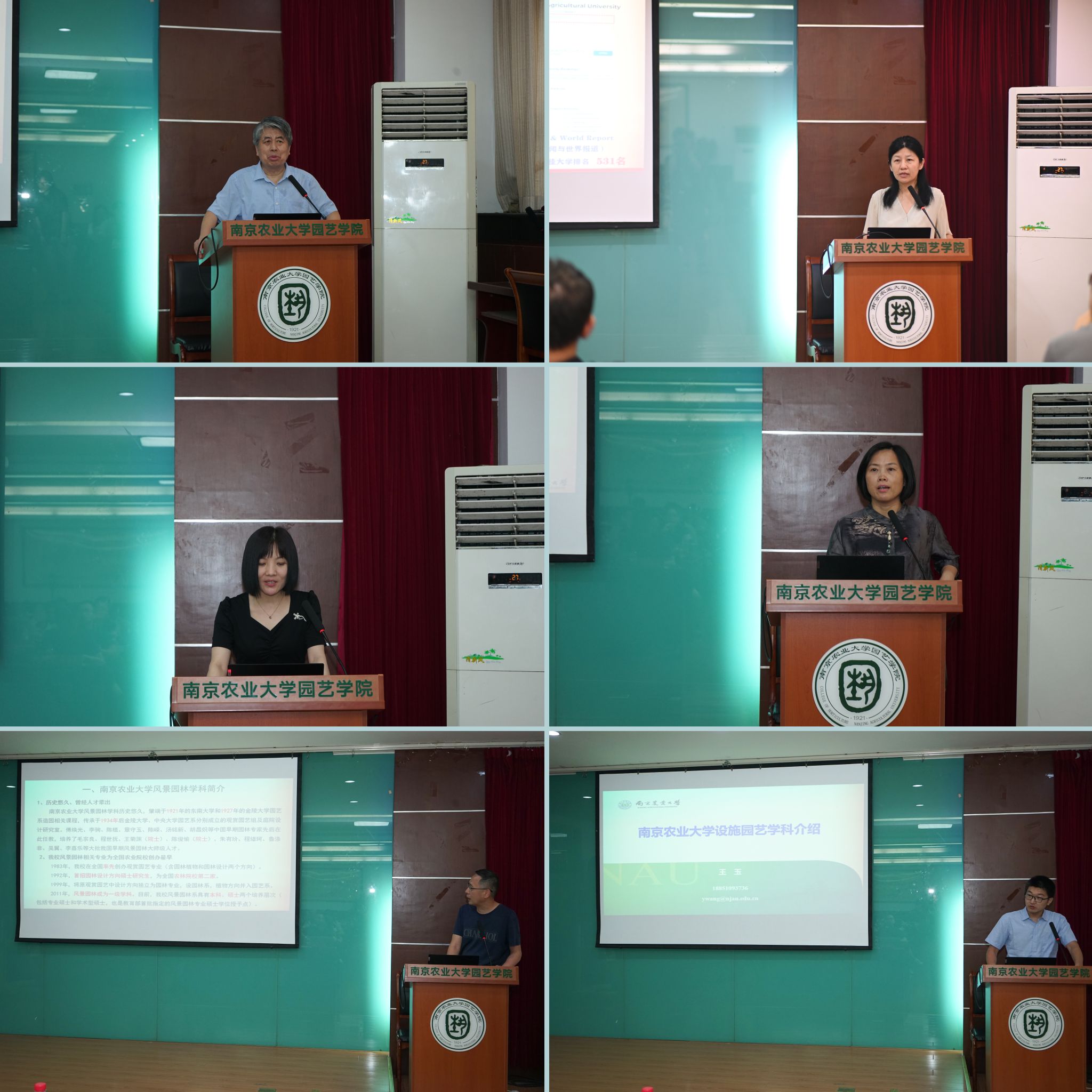 院长、观赏园艺学学科点点长陈素梅教授,茶学学科点点长房婉萍教授,风景园林学学科点点长丁绍刚教授,果树学学科点秘书王晨教授,设施园艺学学科点秘书王玉副教授,研究生辅导员芮伟康。