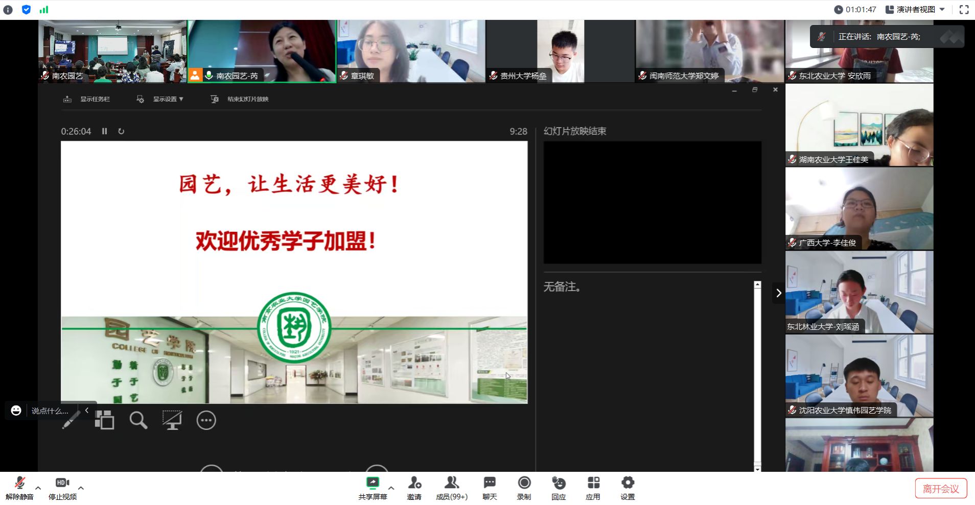 7月8日上午,工作人员通过腾讯会议直播的方式带领大家线上云游南农,趣说南农历史,详谈校园生活。