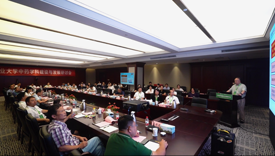 王源超首先代表学校致欢迎辞,他对学院在推动中药学科事业发展以及在学校建设发展中作出的重要贡献给予了充分肯定。他强调,要聚焦国家战略需求,遵循中医药的发展规律,突出中药学科特色,以改革创新为动力,以服务国家和区域经济社会发展为导向,深耕特色,守正创新,以更高的站位和更广的视野谋划中药学科未来发展。他希望各位专家畅所欲言、献计献策、取长补短,协同发展,将中药学科建设越办越好。