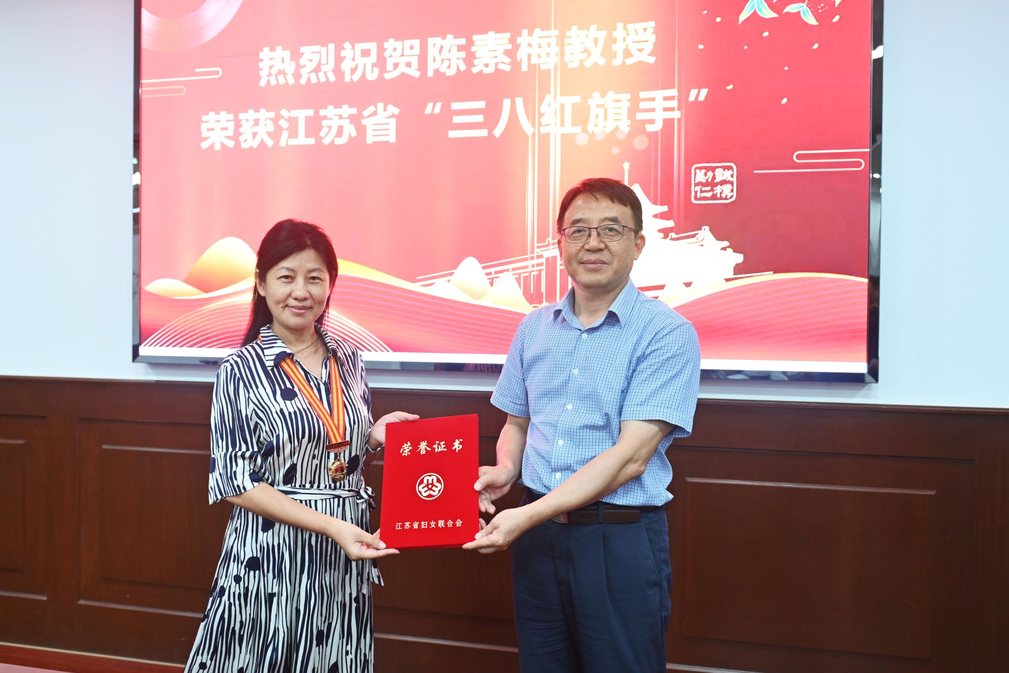 陈素梅教授日前被江苏省妇联授予江苏省“三八红旗手”荣誉称号,以表彰她近年来在教学、科研、管理等方面作出的突出贡献。