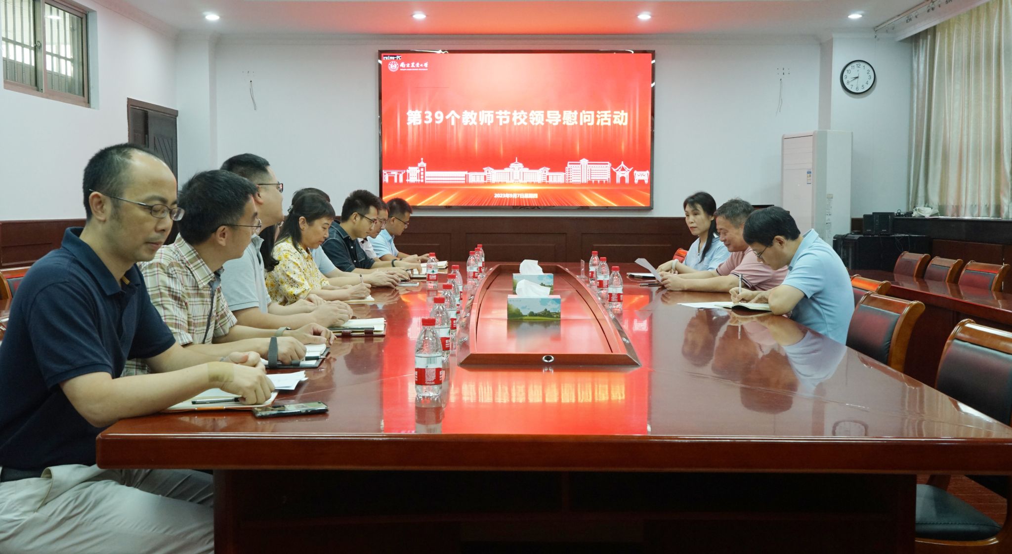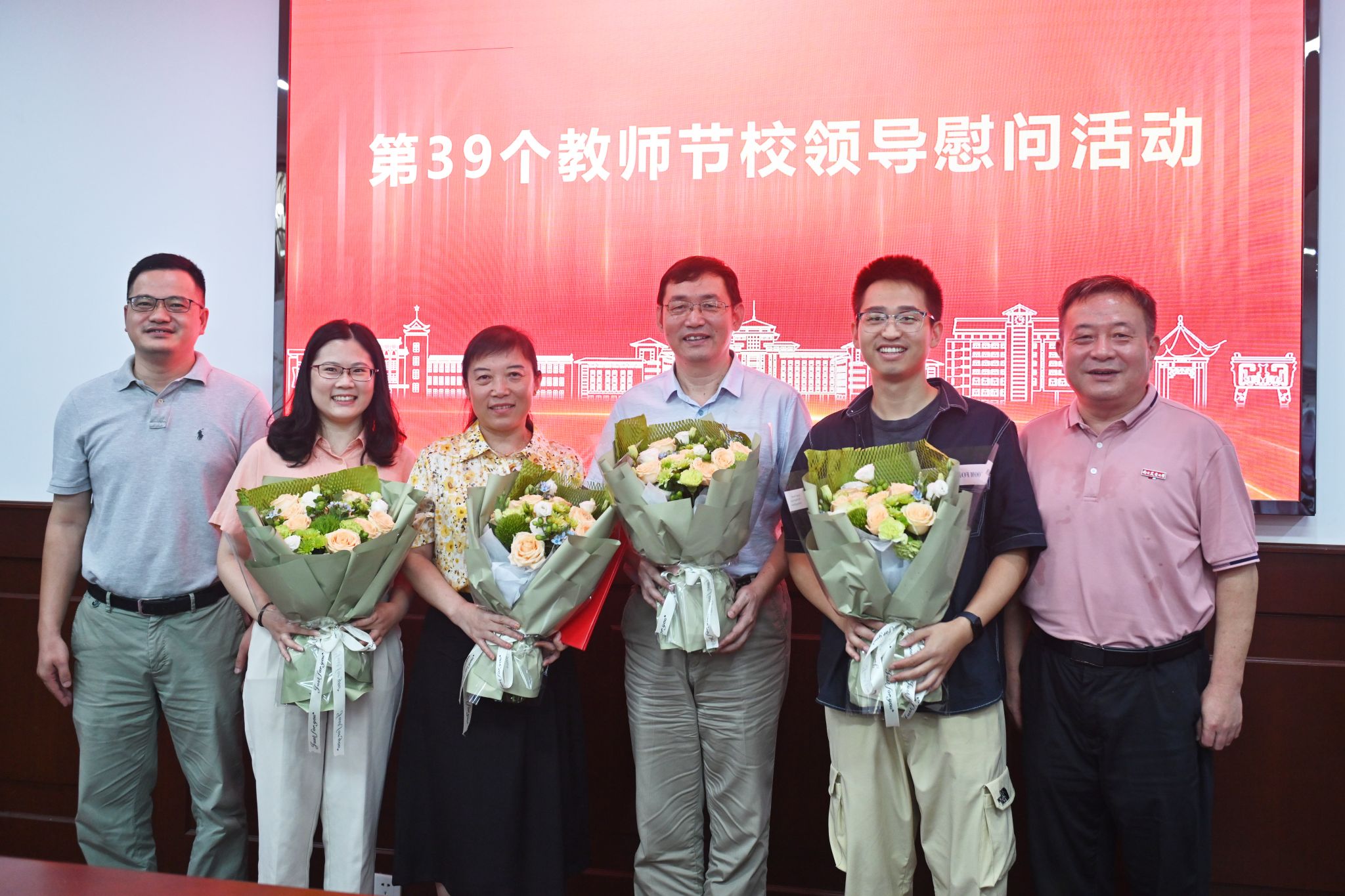 9月7日上午,在第39个教师节到来之际,学校开展教师节慰问活动,校党委副书记、纪委书记吴荣顺一行赴学院慰问教师代表,为他们送上节日的祝福和诚挚的问候。学校党委宣传部副部长屈勇、校园文化建设事务主管崔滢、学院领导班子参加慰问活动。
