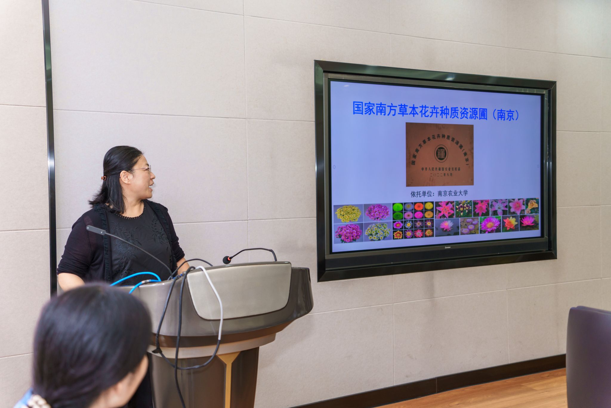 而后,赵爽副教授也向我们介绍了涵盖菊花、百合及兰花等重要花卉的国家南方草本花卉种质资源圃(南京)概况以及优质种质资源相关研究成果。目前,该资源圃收集保存各类菊花种质5628份,南农大菊花遗传与种质创新团队已突破了抗性和花色、花型、株型等性状的综合改良,率先育成绿色、乒乓型和风车型等优质高抗新奇特菊花新品种,获授权国家植物新品种权121个,为我国菊花品种更新和产业升级做出了重要贡献。从菊花茶、菊花酒,再到菊花面膜、菊花口红等各类衍生品,菊花不仅延伸出了产业链条,还通过创新共享拉动东西部的联动。看似质朴,却能推动产业升级、让农民共享扶贫成果,促进脱贫攻坚与乡村振兴的同向接轨。