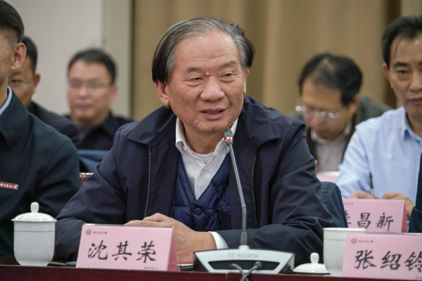 沈其荣院士向新当选的张绍铃院士表示祝贺。他勉励全校科技工作者,学习张绍铃院士持之以恒、坚持不懈的科研精神,扎根中国大地开展科学研究,坚守和聚焦产业技术的科学问题,艰苦奋斗、攻坚克难、迎难而上,为解决国家“三农”问题贡献南农智慧、提出南农方案。