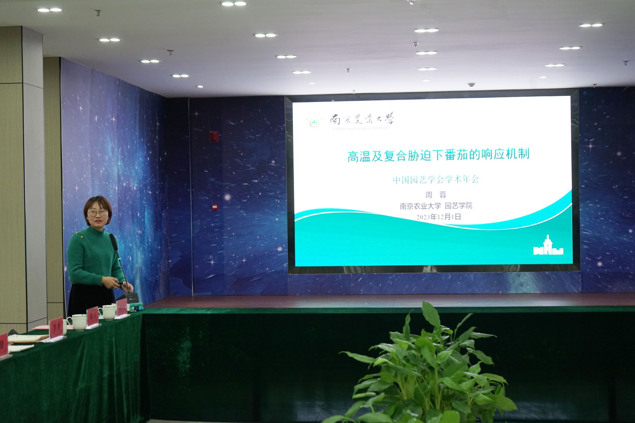 蔬菜学科青年教师周蓉副教授从选题背景、重要性状挖掘以及科研成果等方面分享了她从事番茄研究以来所做的工作。