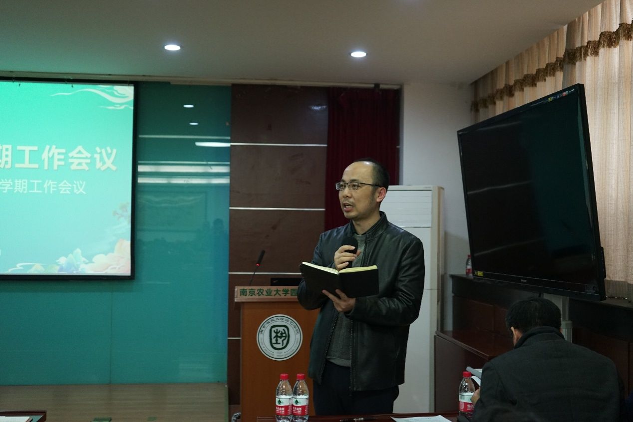 韩健首先回顾了过去一年学院取得的亮点成绩和成果突破,传达了学校第十二届委员会第十六次全体(扩大)会议精神,重点领学和解读了校党委书记王春春作的题为《在强国建设新征程上彰显南农新作为》和校长陈发棣作的题为《认识再强化 措施再精准 责任再压实 奋力推动学校高质量发展实现新跨越》的大会报告主要内容。他提出全体教师要统一思想、提高站位、凝心聚力、全力以赴,全面贯彻落实学校新学期各项决策部署。