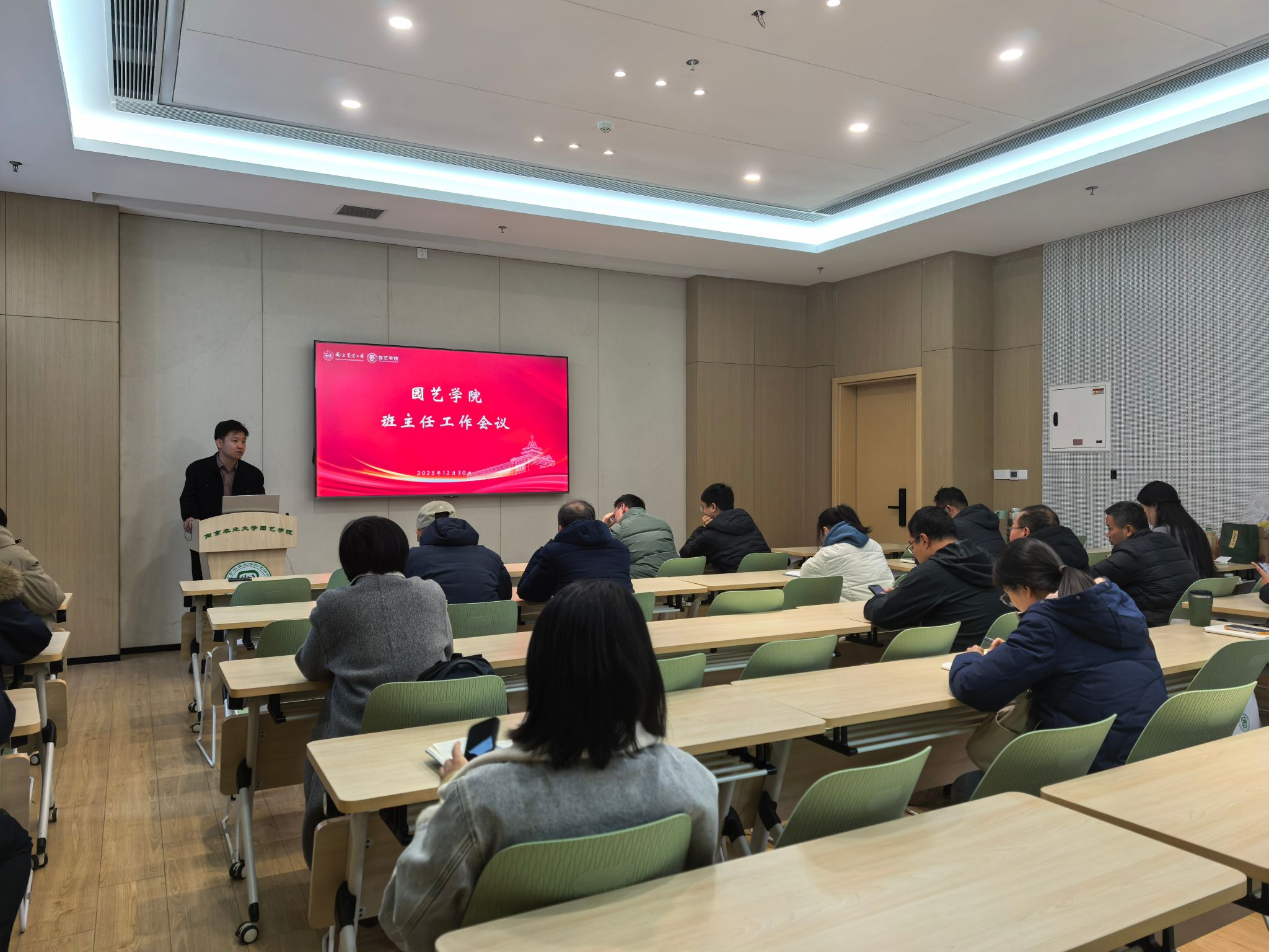 束浩渊代表学院充分肯定班主任队伍一学期来的辛勤工作,并围绕招生宣传、就业指导、“双创”成果培育及日常管理服务等方面,总结了本学期取得的成果。他指出,期末阶段,班主任要强化考风考纪教育,通过班会等形式严肃考试纪律、强调违纪后果,引导学生全力投入复习,营造诚信应考良好氛围;协同推进实践周工作,做好引导保障,确保学生实践锻炼安全有序进行;做好毕业班学生考研跟进与就业帮扶工作,对升学学生进行分类指导,对未就业学生开展精准帮扶,引导学生抓住求职窗口期,促进毕业生高质量充分就业;做好寒假离校安全教育与留校学生管理工作,严格落实留校报备制度,切实守护学生假期平安。