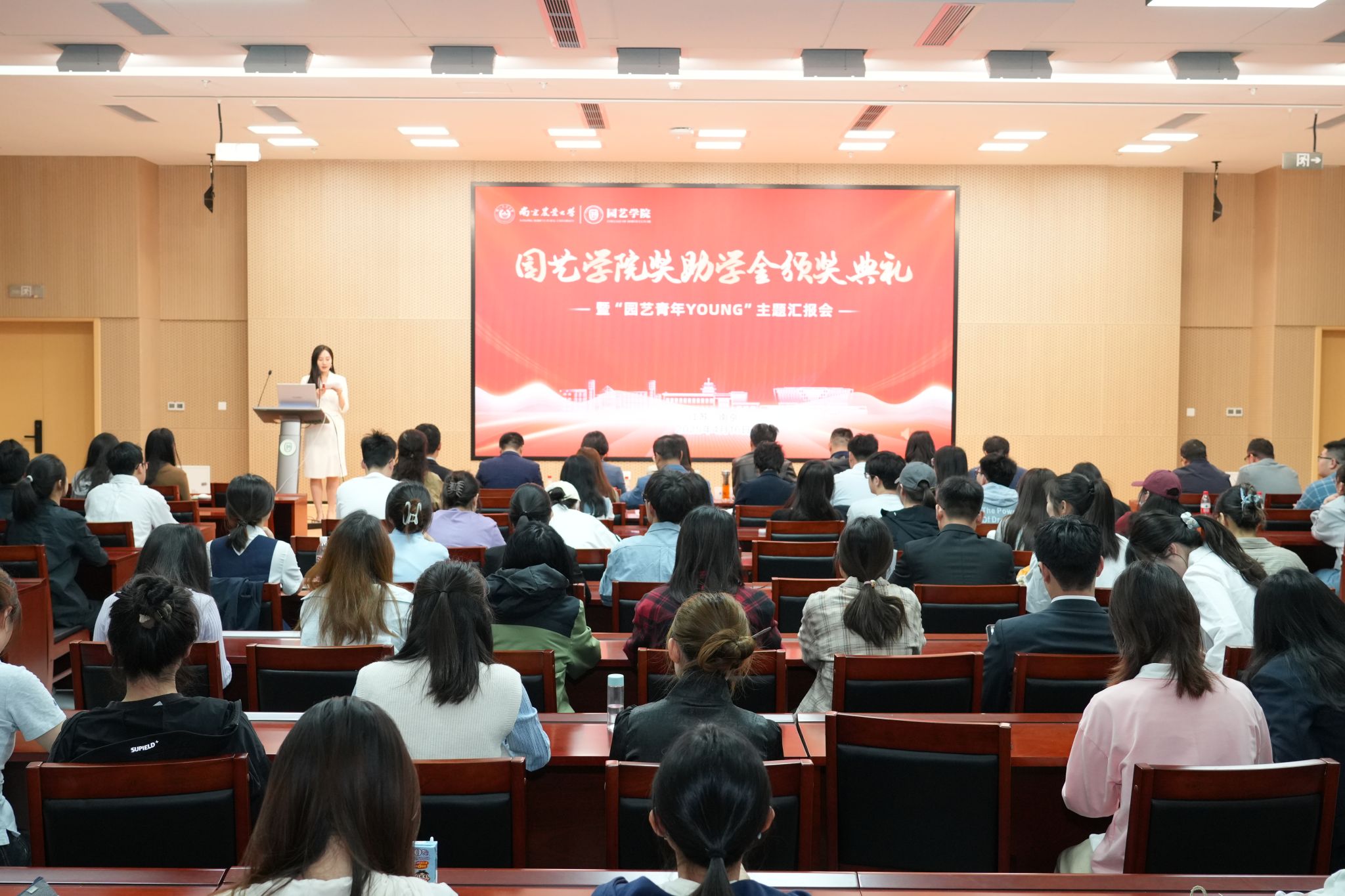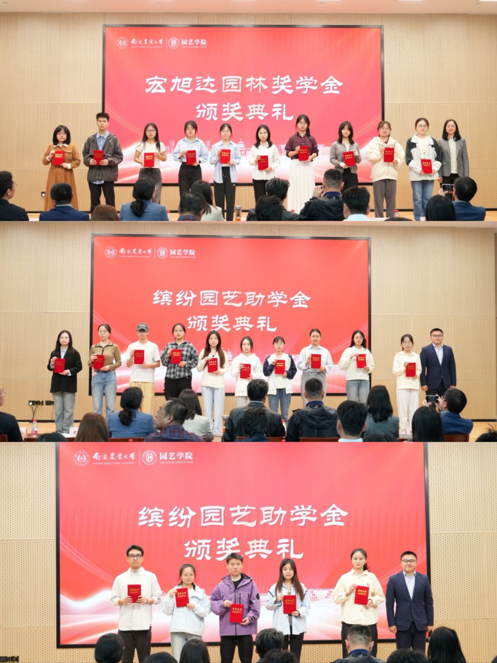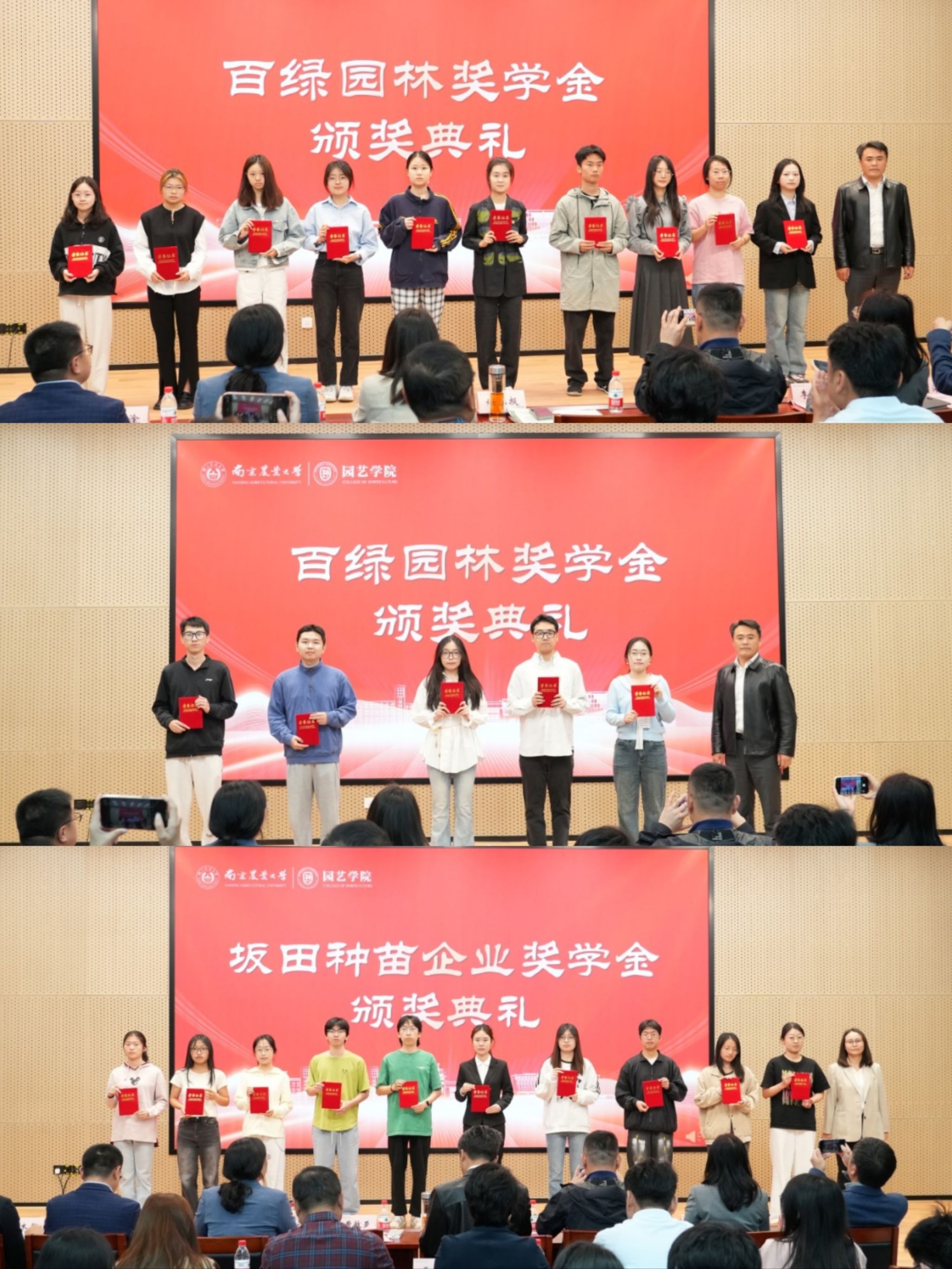 奖助学金颁奖典礼暨“园艺青年YOUNG”主题汇报会在滨江校区隆重举办。江苏百绿园林集团有限公司副总经理、党支部书记姚礼报、坂田种苗(苏州)有限公司总务管理部副部长曹敏亚、创想姜来(江苏) 农业科技有限公司总经理于超、章镇奖学金设奖家属代表章元、南京云几文化产业发展有限公司执行董事王蕾、南京药业股份有限公司总经理张文、金埔园林股份有限公司副总裁杨晓波、南京拙景园林规划工程有限公司人事经理李慧娟、江苏百绿园林集团有限公司高级人力资源专业师章星星,校学生工作处副处长李阿特、校团委副书记方淦,麻豆在线