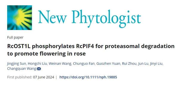 王长泉教授团队在New Phytologist杂志发表了题为“RcOST1L phosphorylates RcPIF4 for proteasomal degradation to promote flowering in rose”的研究成果,该研究揭示了RcphyB-RcOST1L-RcPIF4模块响应光强调控月季开花的作用机制,为日中性植物如何在不同光照条件下控制其开花时间提供了分子见解。