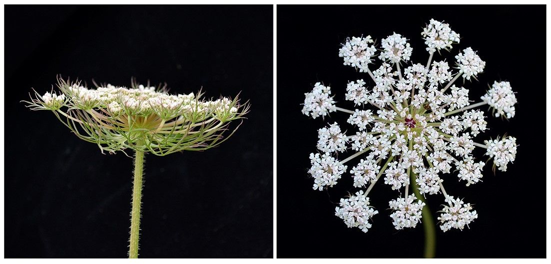 野生胡萝卜(Daucus carota subsp. carota)是栽培胡萝卜的祖先,也被称为安妮女王的蕾丝(Queen Anne's Lace),因为它具有精致的蕾丝般花朵且在伞形花序的中心有一朵或一簇紫色的小花,这是一种有趣而独特的现象,达尔文在物种起源中对其进行了记载。对这种独特花型的研究主要集中在生态学方面。胡萝卜紫色中心花形成的分子机理尚未明晰,其背后的基因调控网络仍不清楚。