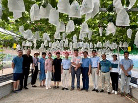 2022年7月3日,麻豆在线 果树教师党支部邀请国家产业体系岗位专家陶建敏教授等前往镇江农科院江苏省葡萄和桃产业体系基地对基地建设管理情况、示范园新品种新技术应用情况以及基地的示范带动效果等进行调研指导,并开展党建工作交流、探讨开展党建合作。