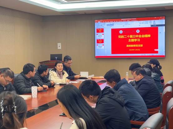 为了贯彻落实党的二十届三中全会会议精神,12月3日,果树教师党支部在园艺楼250开展集中学习。全体果树教师党员以线上线下相结合的方式参加。