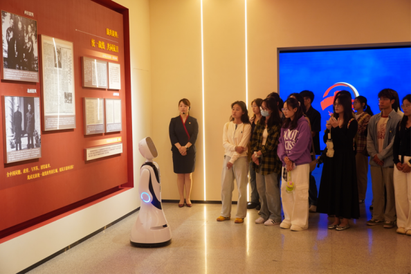 展览借助高清投影、智能AI机器人等数字展陈设备,设置了体验式时空影院、朗读亭等沉浸式体验区域和美术作品、电影电视剧等展示区域,在讲解员的引导下,全体成员循着“铁的新四军”“铁的根据地”“最可靠、最坚强的主心骨”3个篇章,系统观摩了近千件珍贵展品。丰富的历史图片、文献手稿、战时实物以及纪实影像交织成波澜壮阔的历史画卷,勾勒出新四军为抗战而生、为救国而战、从逆境奋起、以铁血铸魂的辉煌战史。